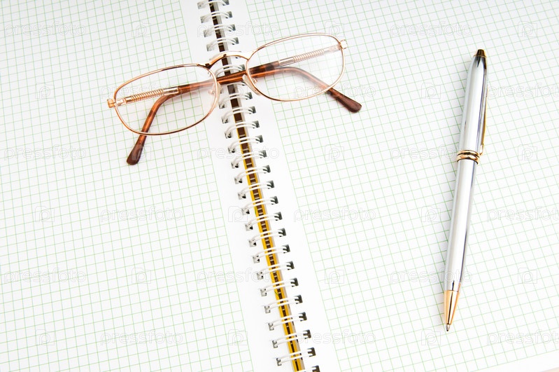 Ручка и очки на странице тетради