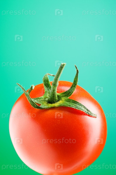 Красный помидор на фоне зеленого градиента