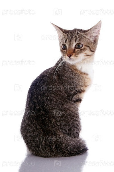 Полосатый маленький котенок сидит