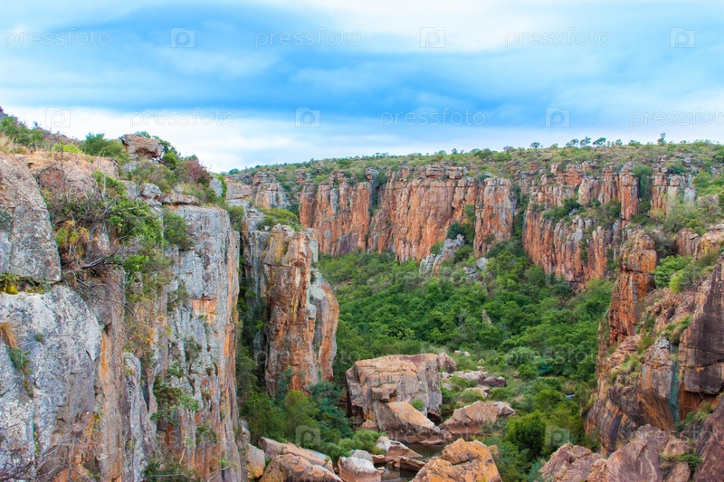 Каньон Блайд Ривер, Южная Африка, Мпумаланга, летний пейзаж, красные скалы и вода