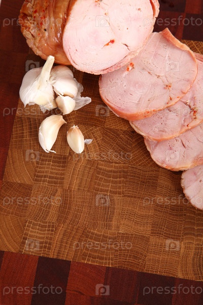 Ломтики ветчины на деревянной разделочной доске