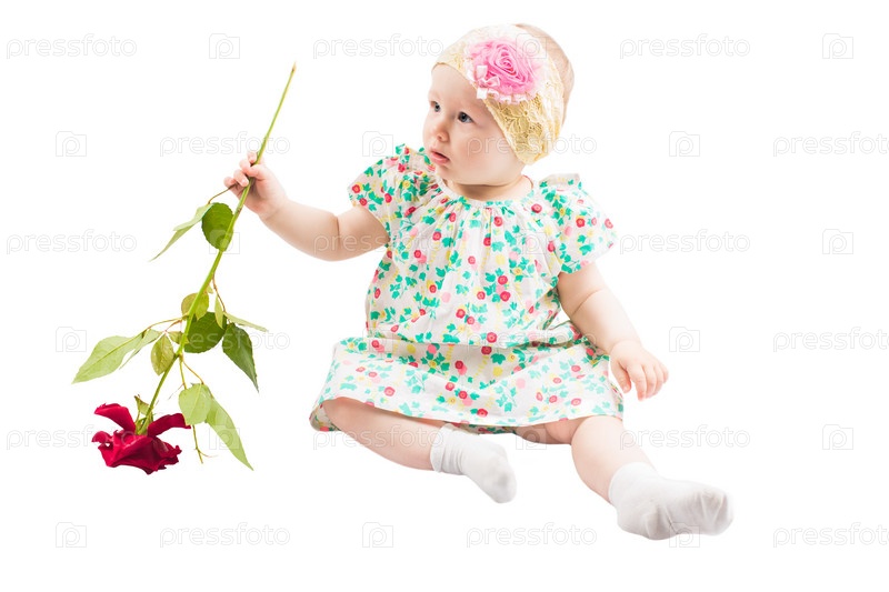 Симпатичная девочка с розой, изолированная на белом фоне