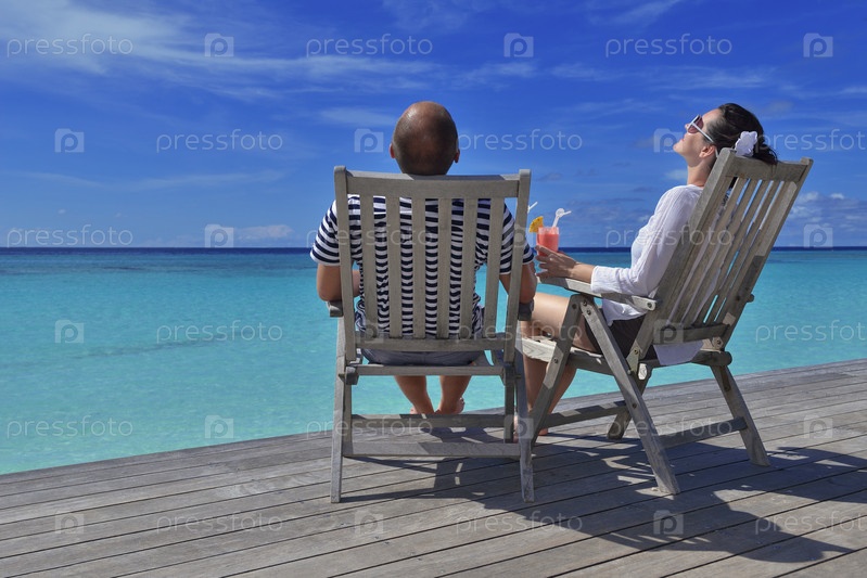 Счастливая молодая пара весело проводит время на летних каникулах на пляже