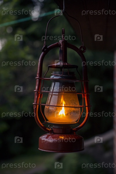Старая керосиновая горящая лампа
