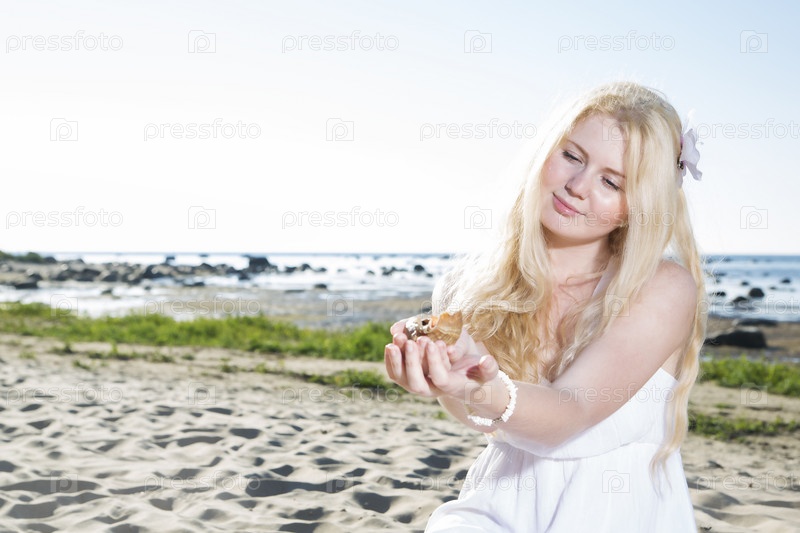 Молодая женщина с ракушкой