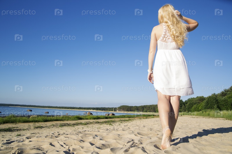 Женщина в платье на пляже
