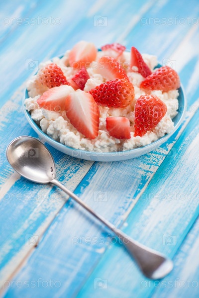 Свежий творог с нарезанной клубникой