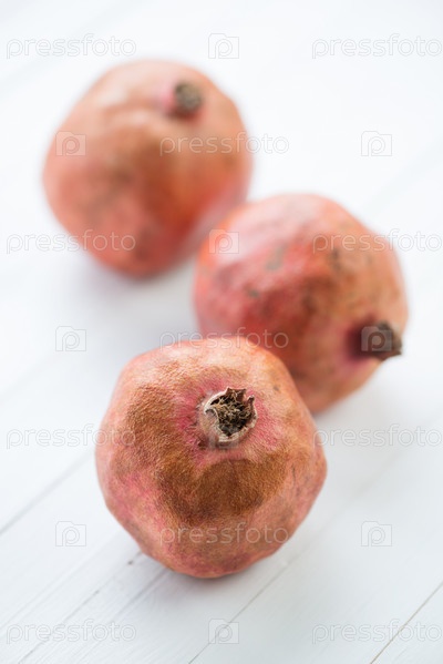Натюрморт: гранаты на белых деревянных досках