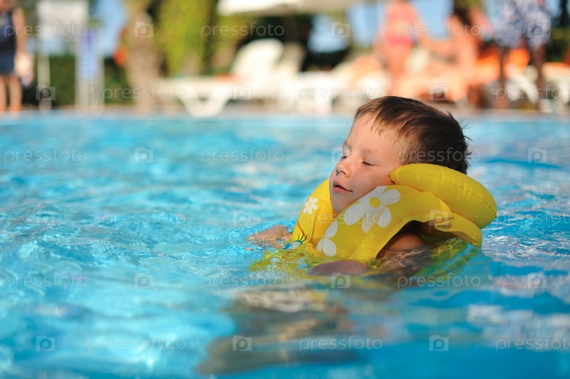 Мальчик купается в бассейне