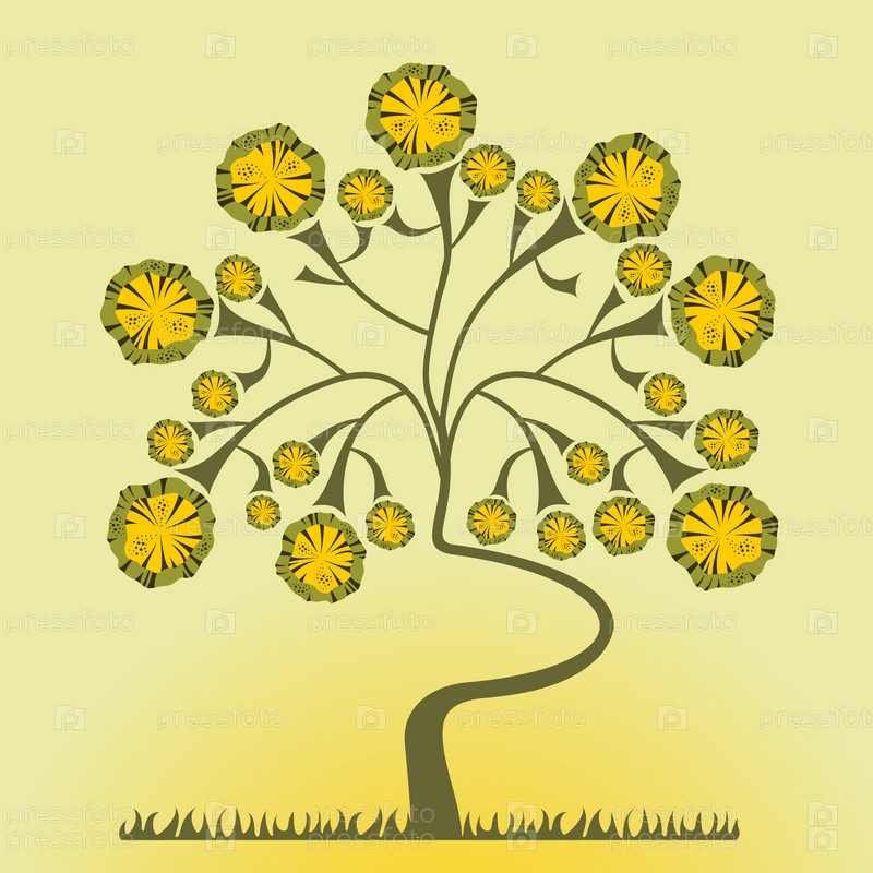 Абстрактное изображение дерева на желтом фоне