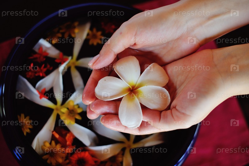 Женские руки и цветы в воде