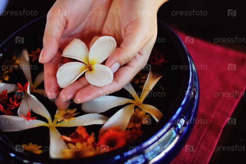 Женские руки и цветы в воде