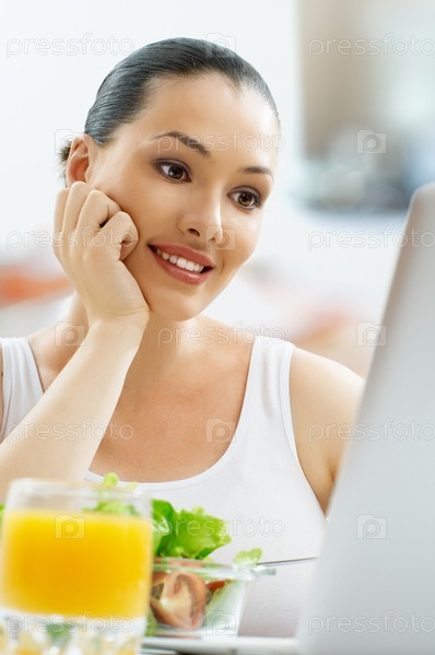 Красивая девушка ест здоровую пищу