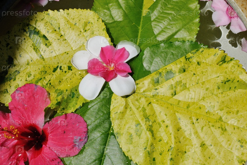 Миска воды с красивыми цветами в качестве фона