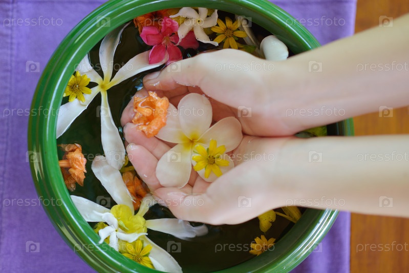 Женские руки и цветы в воде
