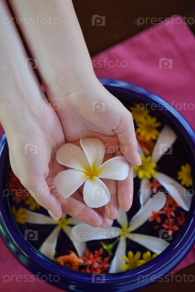 Женские руки и цветы в воде