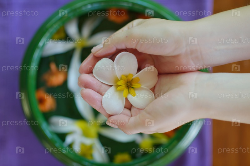 Женские руки и цветы в воде