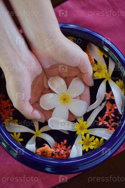 Женские руки и цветы в воде