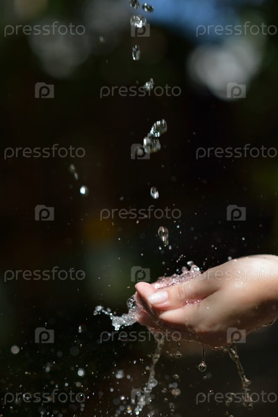 Вода течет на женские руки