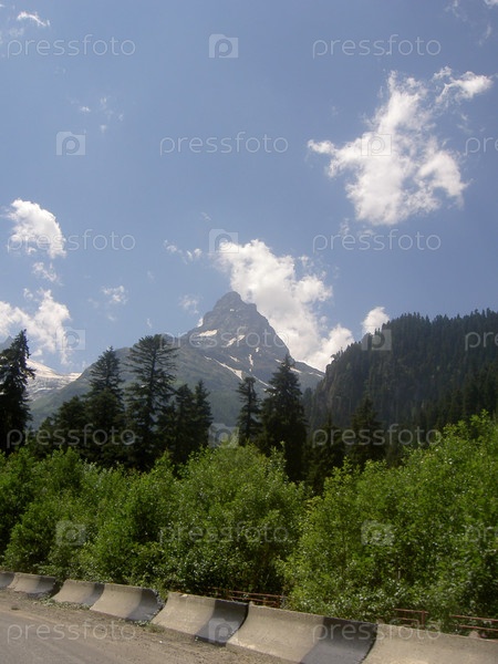 Горы и лес на трассе Теберда - Домбай, Кавказ