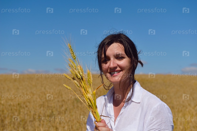 Молодая женщина на летнем пшеничном поле