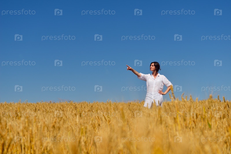 Молодая женщина в поле пшеницы летом