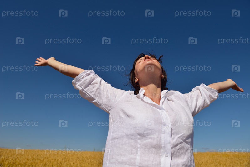 Молодая женщина в поле пшеницы летом