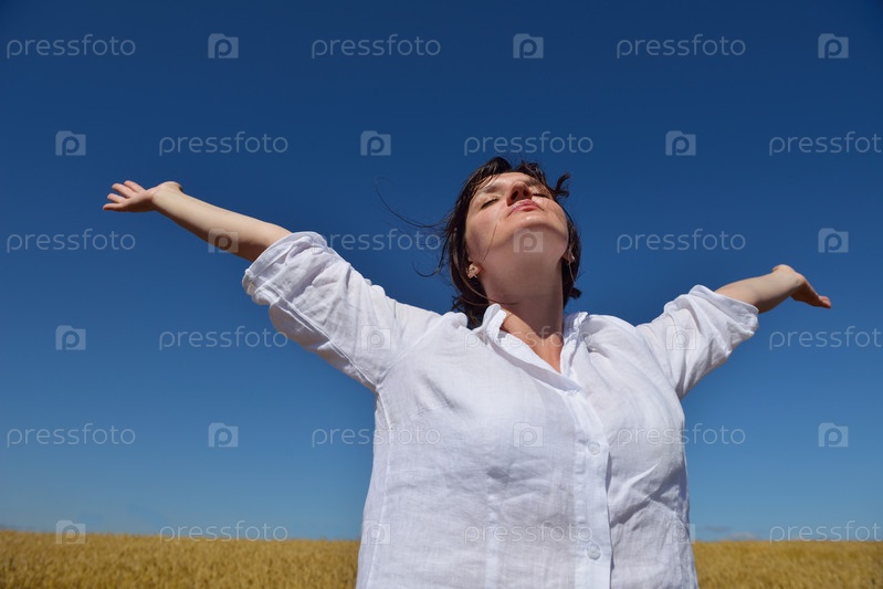 Молодая женщина в поле пшеницы летом