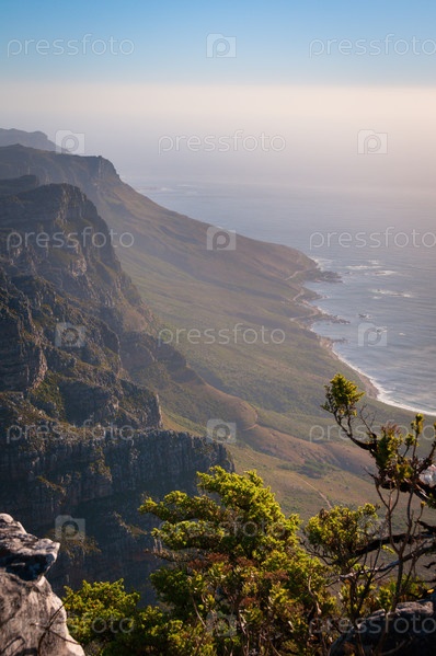 Вид с высокой горы на побережье океана
