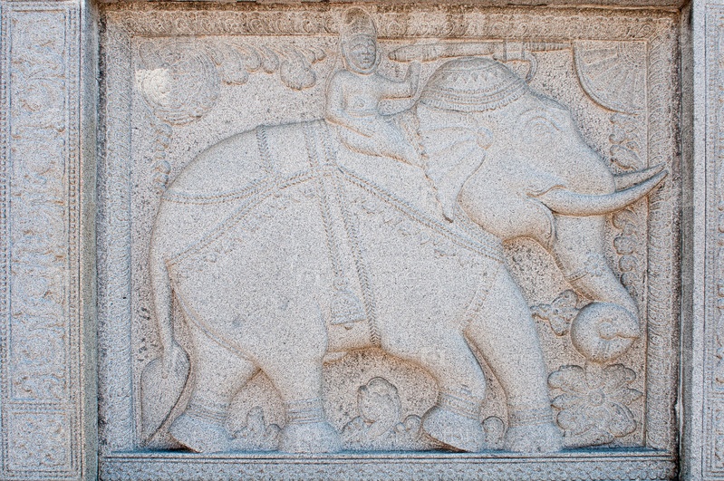 Резьба с человеком, верхом на слоне
