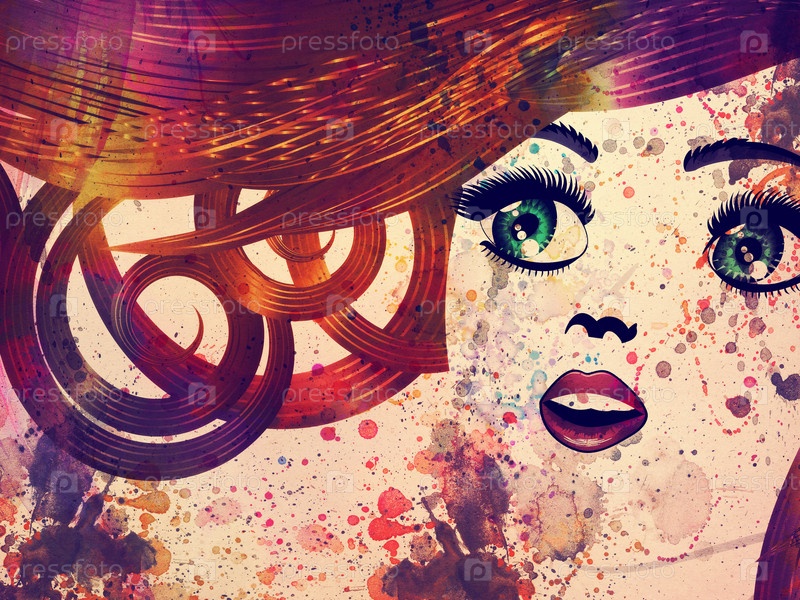 Гранж, брюнетка с зелеными глазами