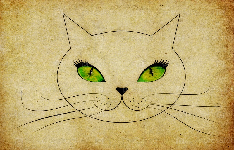 Гранж, морда кошки с зелеными глазами