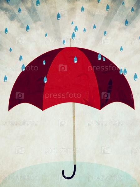 Красный зонт и дождь