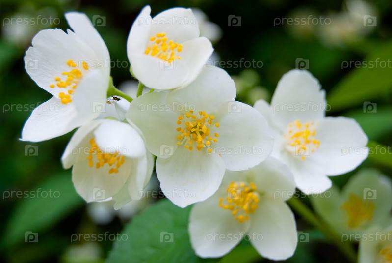 Цветки жасмина и зеленые листья