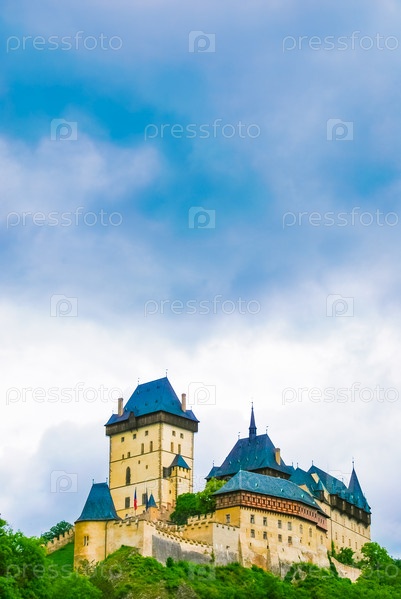 Замок Карлштейн на зеленом холме, Прага