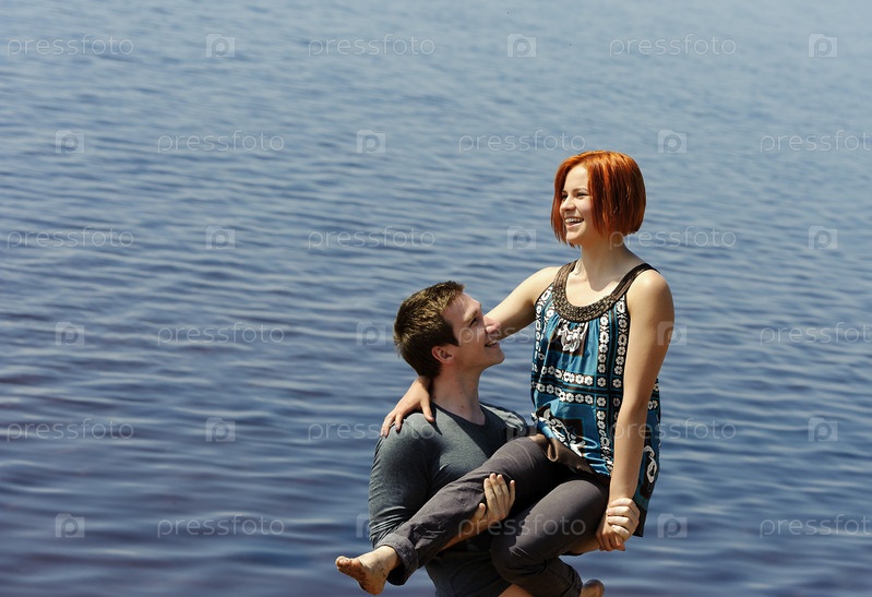 Портрет молодой красивой счастливой пары на природе