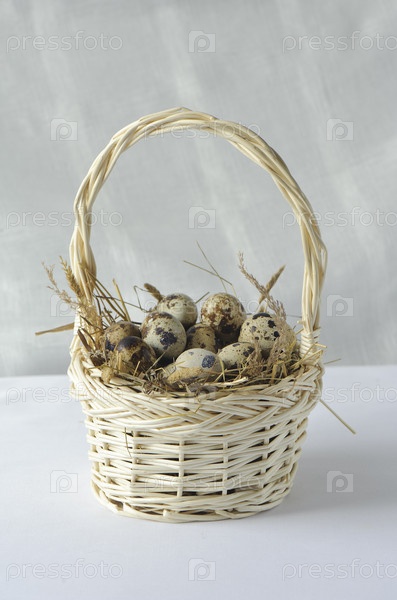 Перепелиные яйца в корзине