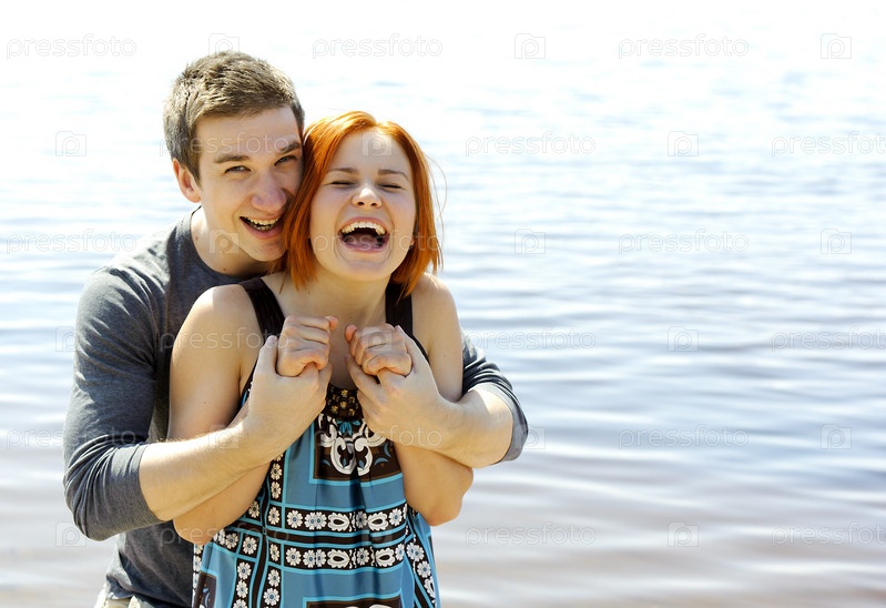 Портрет молодой красивой счастливой пары на улице