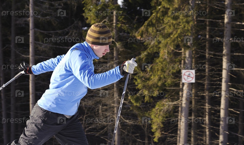 Лыжник на прогулке в парке