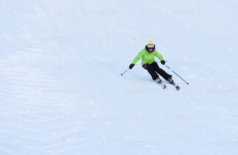 Лыжник спускается по склону