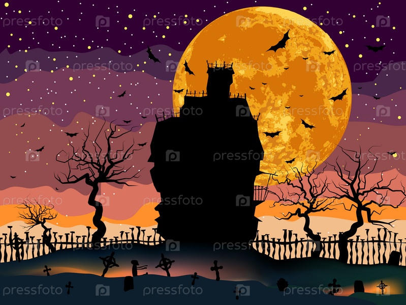 Страшный дом ведьмы на кладбище, вектор