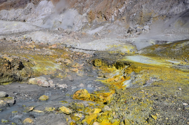 Остров "Уайт-Айленд"Белый остров). Поверхность кратера действующего вулкана. Новая Зеландия