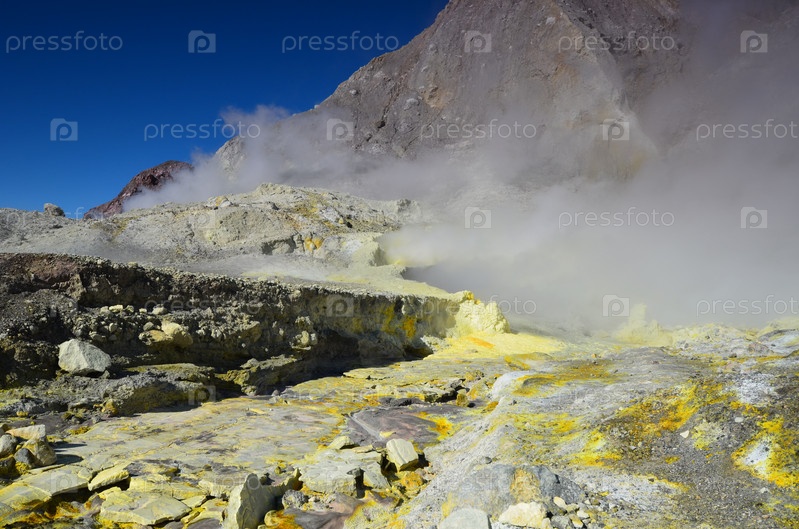 Остров Уайт-Айленд (Белый остров). Поверхность кратера действующего вулкана. Новая Зеландия