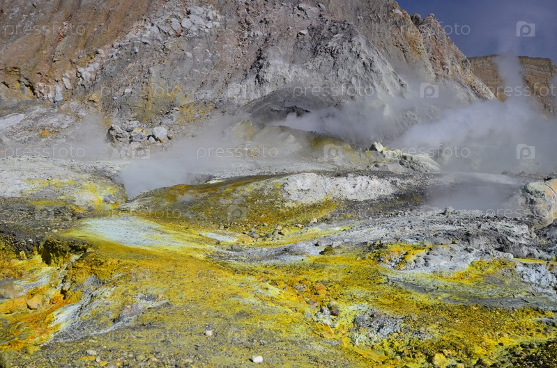 Остров Уайт-Айленд (Белый остров). Поверхность кратера действующего вулкана. Новая Зеландия