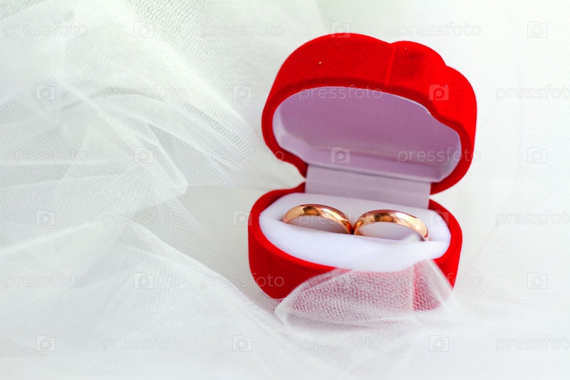 Обручальные кольца в красном футляре. Крупный план