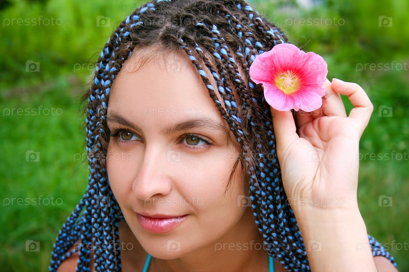 Привлекательная девушка с цветком крупным планом
