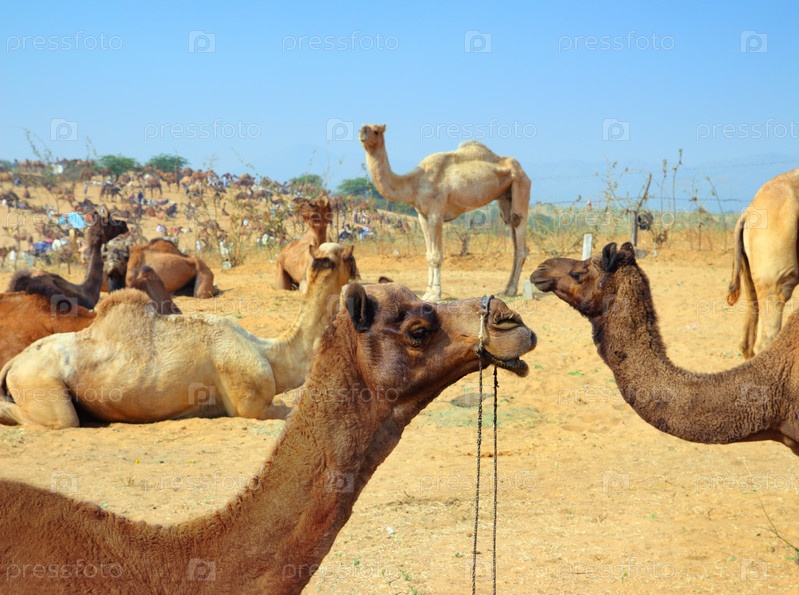 Группа верблюдов на празднике в Пушкаре