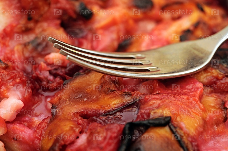 Сливовый пирог с вилкой крупным планом