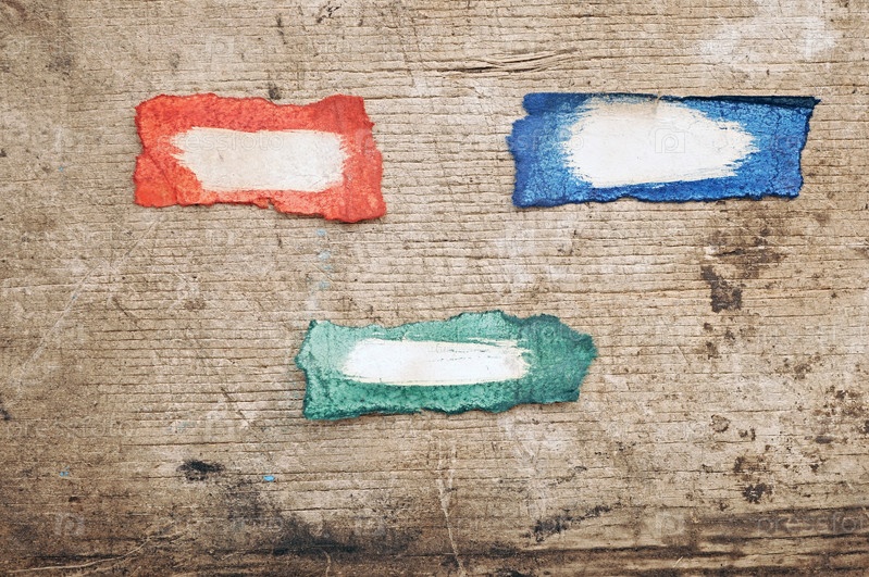 Набор цветных баннеров на старом деревянном фоне
