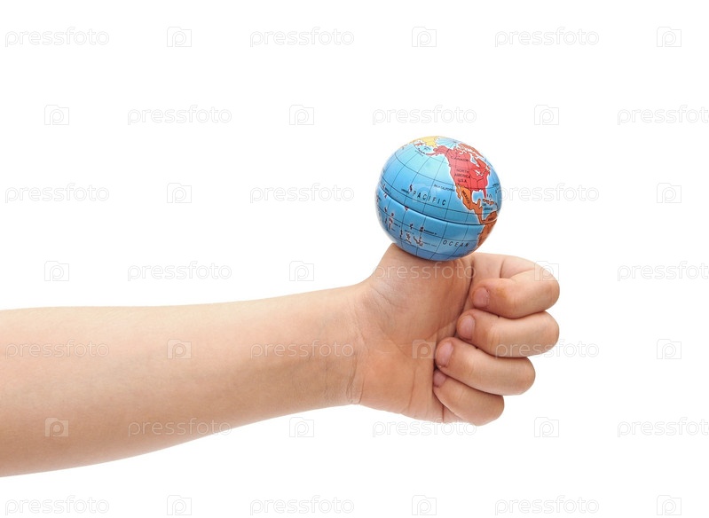 Детская рука с земным шаром на пальце
